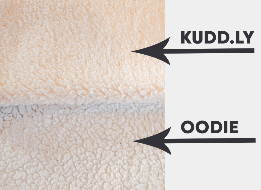 Oodie also states on their website that they have the highest quality material, that guarantees exceptional experience and comfort. The Oodie’s cosy, we’ll give them that, but comparing the sherpa interior from the Oodie to the sherpa interior from the Kuddly, we think the picture speaks for itself. The Kuddly Blanket Hoodie is just as comfy and cosy, if not more.