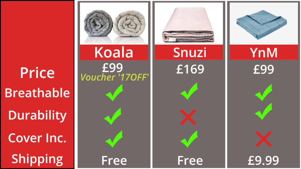 Weighted Blanket Comparison Chart UK