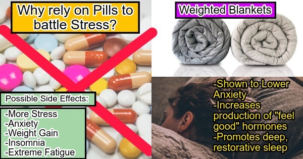 Weighted blankets have become very popular. Studies have shown they can reduce the symptoms of insomnia, reduce stress, and reduce anxiety.